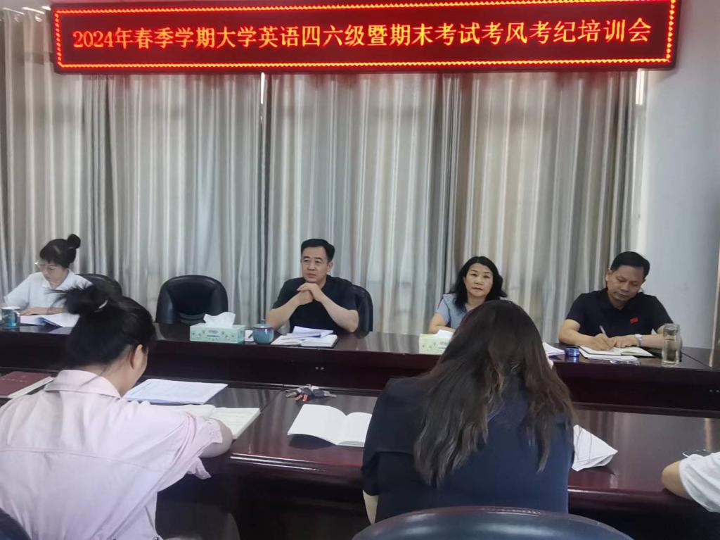 6月12日,韦德bevictor在逸夫楼302会议室召开全国大学英语四、六级考试暨期末考试考风考纪培训会。公司党委书记李舟、经理李保红、副书记付春锋、副经理姚光金、马晓欢、相关负责老师参加会议。会议由李保红主持。