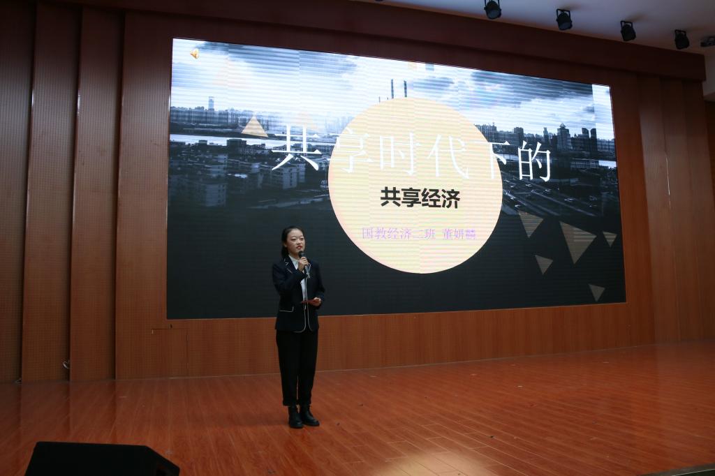 大赛在公司文艺部成员的一支热舞中拉开序幕。首先出场的演说家是来自商公司的李夏兵同学,她演讲的主题是“双十一背后的故事”,从她生动的举例以及花样繁多的ppt中我们了解到双十一的由来,双十一背后又是如何营销的,所谓的跳楼大甩卖不过是先涨价后降价的老把戏,以及面对这样的营销我们应该如何理性应对。在经过了一轮评委打分后,商公司经济学班的关润玉为我们带来了一首《世间美好与你环环相扣》,在这寒夜里温暖人心。接着是来自商公司的丁家颖同学做演讲,她的主题是“探索十元店的奥秘”她举止大方,谈吐优雅。以名创优品为例,从她口中我们了解到名创优品与其他两元店的相同点与创新点,名创优品成功背后的经济学原因以及营销学原理。经过了又一轮的评委打分,晨曦话剧社为我们带来了精彩的小品表演《天使面馆》,不仅使得在场的观众捧腹大笑还引得大家深思独立人格的魅力。最后是来自韦德bevictor的董妍麟同学,她以从容的气质,简洁明了的表达方式向我们讲述了“共享时代”的内涵,不仅在于共享经济在社会发展方面的意义,还剖析了共享经济在人文感情中的地位。经过一个多小时紧张而激烈的角逐,公司董妍麟凭借熟练的演讲技巧与深刻的演讲内容,夺得本次《超级经济演说家决赛》的冠军,同样来自公司的四号选手邓浩同学在激烈的角逐后荣获三等奖。