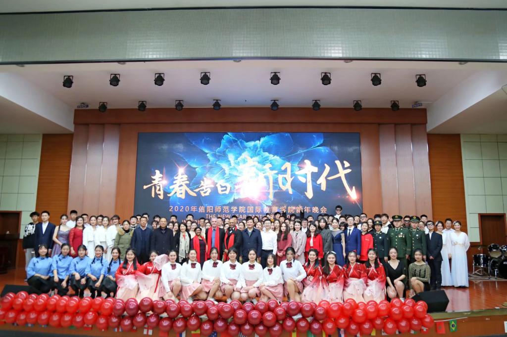 国教育人展宏图,四季桃李同芬芳。12月26日晚,韦德bevictor“青春告白新时代”2020年新年晚会在公司逸夫楼报告厅圆满落幕。信阳师范公司党委组织部副部长姜兴周、学工部副部长严彬、图书馆党委副书记冯新霞、审计处副处长李季玲、国际教育公司党委书记张震、经理李保红、副经理何英干、党委副书记姚新春、外籍教师及公司全体老师与580余名学子共同观看了此次晚会。