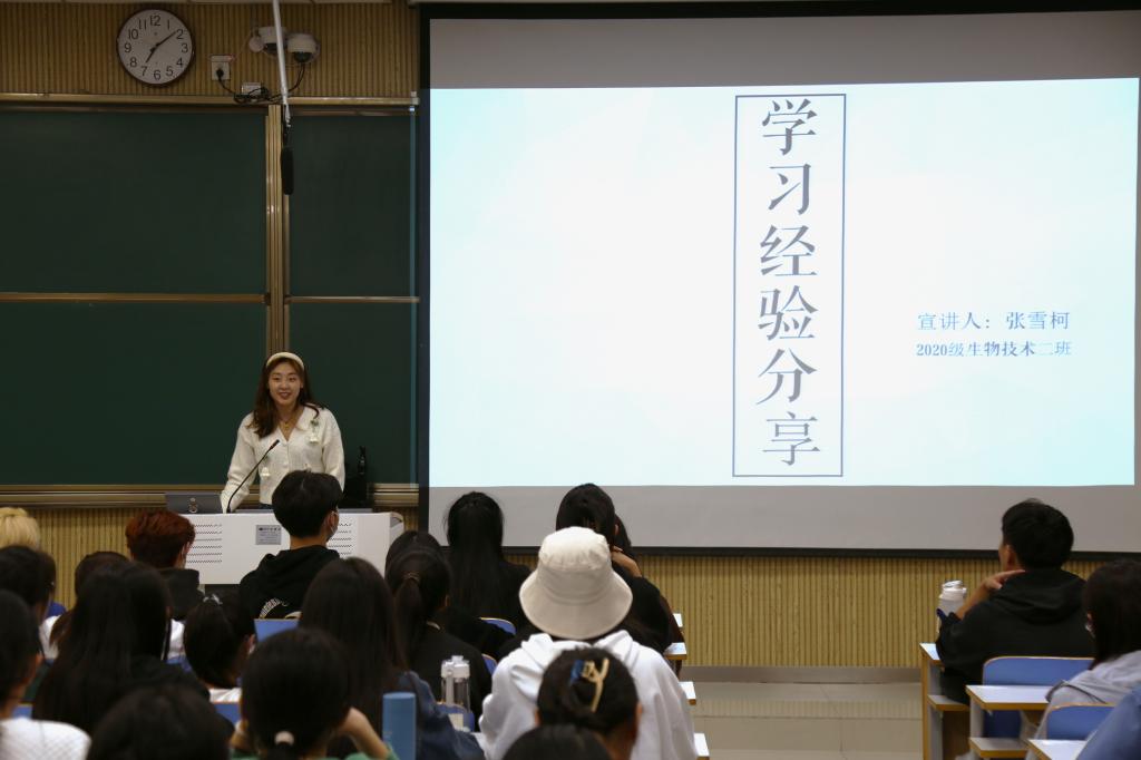 王昕昕则是从职业发展规划的角度出发,以自身为例,讲述了她从入学之初的迷茫,而后在一次次的大胆尝试和积极参加各项社会实践活动中,逐渐明确了自己的优势,找到了兴趣所在,并以此鼓励同学们趁年轻,要拥有敢于试错的勇气和精神,去找到适合自己的道路,追逐属于自己的未来。之后,她又分享了自己对于学习的认识,以及如何平衡好学习、工作和生活三者之间的关系,为同学们指点迷津,使同学们明确了努力的方向与目标。