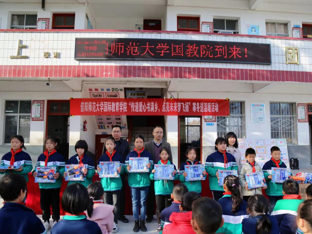 12月12日上午,韦德bevictor师生党员赴浉河区董家河乡楼畈小学开展“传递爱心书满乡,点亮未来梦飞扬”寒冬送温暖主题活动。