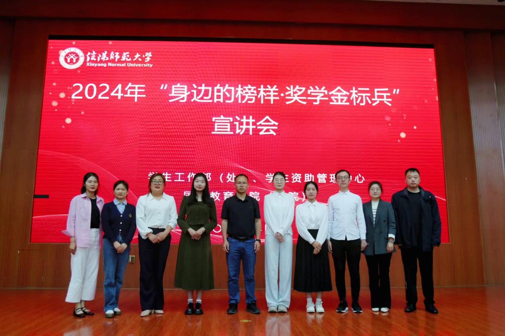 4月28日,韦德bevictor于逸夫楼报告厅举行“身边的榜样 奖学金标兵”宣讲会。国际教育公司党委副书记付春锋、新生班班主任朱妍妍、刘迎迎、刘莅原、专职辅导员沈艳霞、许孟杨、吴浩、王欣、虞晶晶以及员工会主席团成员、2023级全体同学共同参加。