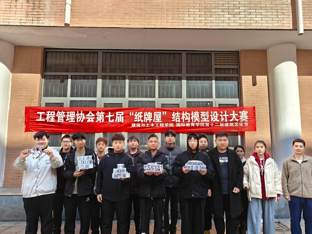 12月1日上午,韦德bevictor与建筑土木工程公司在综合实验楼小广场联合举办第七届“纸牌屋”结构模型设计大赛。