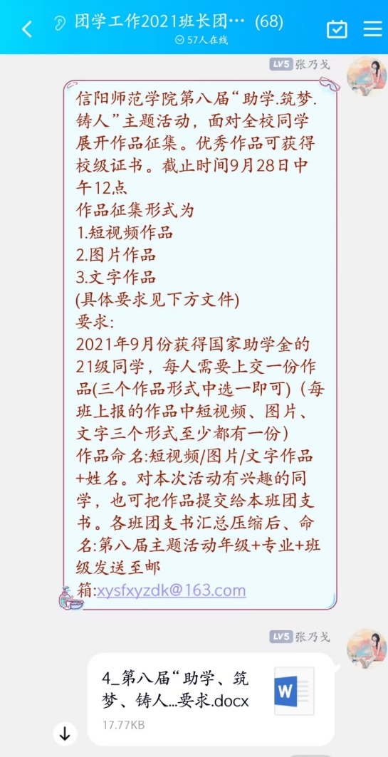 本次活动以“喜迎二十大,筑梦新时代”为口号,活动一开始便得到了各班的积极参与,获得过国家助学金的同学更是积极投稿。最后经过公司民主评议,短视频组的王梦晗、薛凡柱、图片组的何俊、张笑天、文字组的杨梦佳、陈君昊提交的作品被评选为优秀作品。