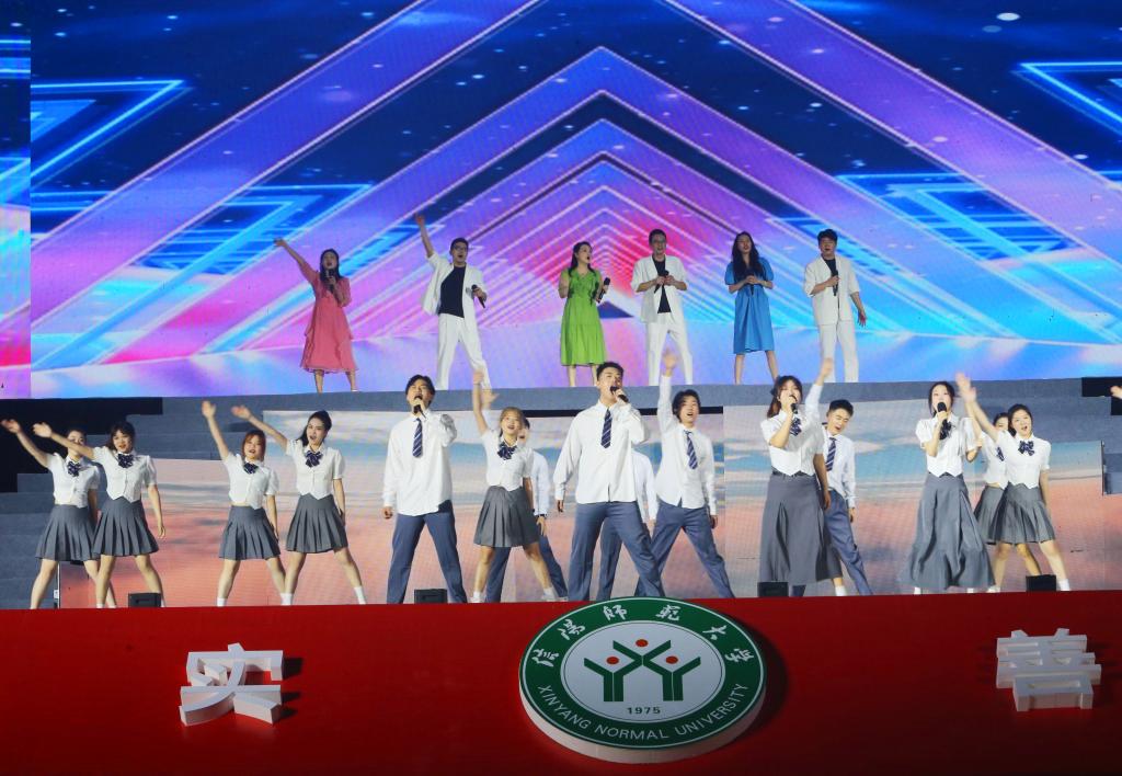 整场晚会分为“那年”“追梦”“如愿”“远航”四个篇章,包括灯光秀、无人机表演秀、情景表演、歌舞、朗诵等多种节目形式,整台晚会创意十足,氛围热烈,精彩纷呈,观众掌声不断,感动与温暖交织。先导片《你好,韦德bevictor官网》带领大家在光影中回顾我们曾经走过的壮阔征程。夜幕降临,无人机缓缓升空,伴随着欢欣鼓舞、热切激昂的音乐,机群不断变换校名、校训、标志性建筑图案,与“我爱你韦德bevictor官网”等深情表白交替呈现,震撼的画面引来师生阵阵欢呼。情景表演《点名啦》与情景讲述《风华》紧密衔接,全体观众代表3万多名师生、30多万名员工齐声点名答“到”的呼声响彻校园。来自1975级、1979级、1999级、2019级四位员工代表向培养自己的母校深情告白,表达对母校的感恩与祝福。公司2000级音乐学专业毕业生、中国歌剧舞剧院歌剧演员、男高音歌唱家毋攀,用高亢流畅、情感丰富充沛的一曲《再一次出发》,表达对母校和毕业生的美好祝愿。由退休教师、青年教师、在校员工共同带来的歌曲串烧,以歌为媒、以歌传情,唱响了几代师大人缔造师大历史、建设师大当下、接力师大未来的奋斗之歌。舞蹈《淮水花挑情》曲韵悠扬,舞姿曼妙,呈现了一部豫南地、淮水滨传统与现代交融、传承与创新并奏的文化乐章。《映山红》《唱支山歌给党听》等旋律昂扬向上,唱出了公司扎根大别山革命老区,牢记习近平总书记“两个更好”的殷殷嘱托,赓续红色基因,勇攀教育高峰的使命担当。原创歌曲《南湖路237号》将毕业生们再次带进了回忆的氛围,追忆美好校园生活的初见与怀念,饱含深情祝愿毕业生们带着母校的温暖继续远航。