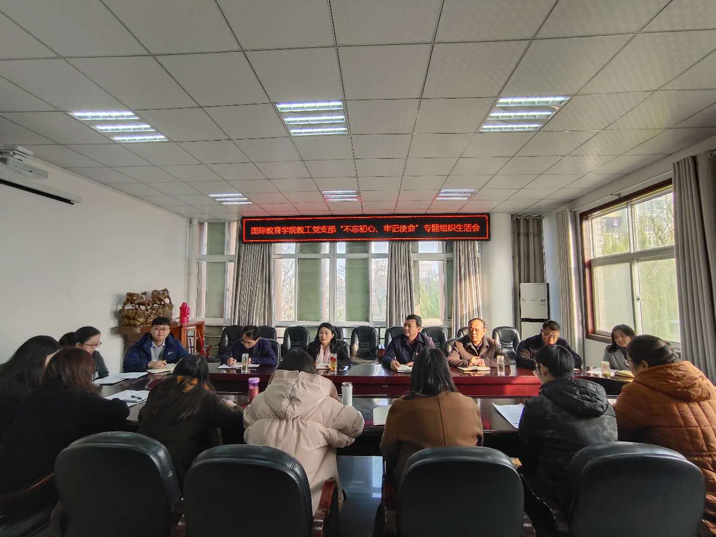 12月9日下午,国际教育学院教工党支部在逸夫楼302会议室召开“不忘初心、牢记使命”专题组织生活会。国际教育学院全体教职工党员参加,会议由教工党支部副书记、教学部主任郭寻主持。
