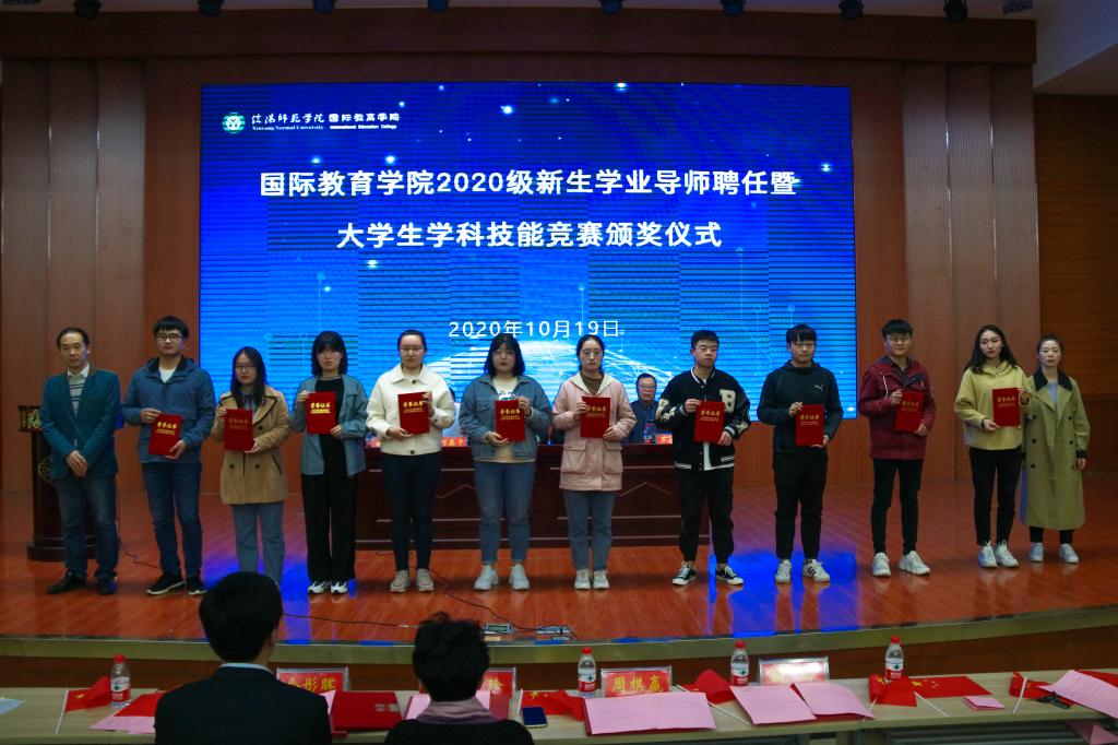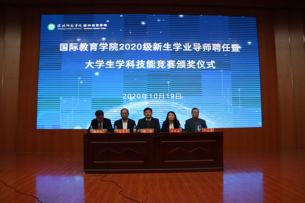 会上,张震重点围绕学业导师的选聘与考核、奖励原则、奖评标准以及奖评体系等内容,解读了《信阳师范公司提升中外合作办学人才培养质量奖励办法(试行)》文件精神;何英干就出国留学的程序和条件、奖励政策等员工家长较为关切的问题,详细介绍了《信阳师范公司在校本科生到中外合作办学外方合作高校出国留学管理办法(暂行)》;芦永德宣读了2020级新生学业导师聘任名单,张震、李保红分别为学业导师颁发了聘书。