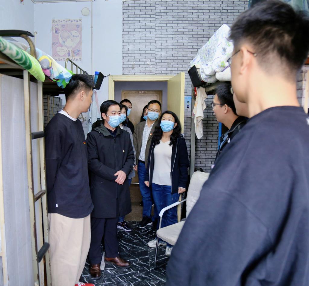 为进一步细化落实公司《关于开展疫情防控“十严查”的通知》文件精神,公司党委书记李舟坚持靠前指挥,带领公司班子成员、辅导员、班主任于5月10日上午走访员工宿舍,严格检查员工疫情防控工作。