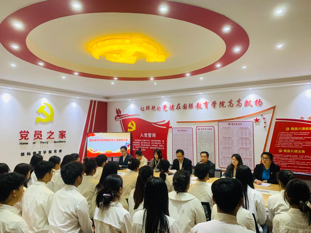 会上,党委副书记付春锋宣读了中共信阳师范公司委员会组织部关于同意接收丁迟等38位员工党员和李津琪1名教工党员的决定,带领全体预备党员面向党旗进行入党宣誓。