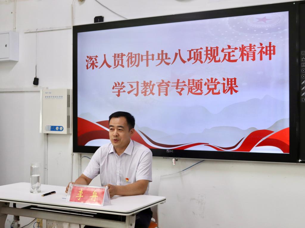 宣誓结束后,李舟以“严守纪律,坚定理想,勇担使命——筑牢青年党员的精神底色”为主题,为全体党员讲授了一堂深刻而生动的党课。