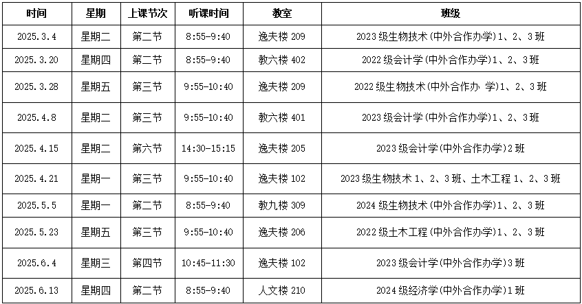 2024-2025学年第二学期领导班子听课安排表