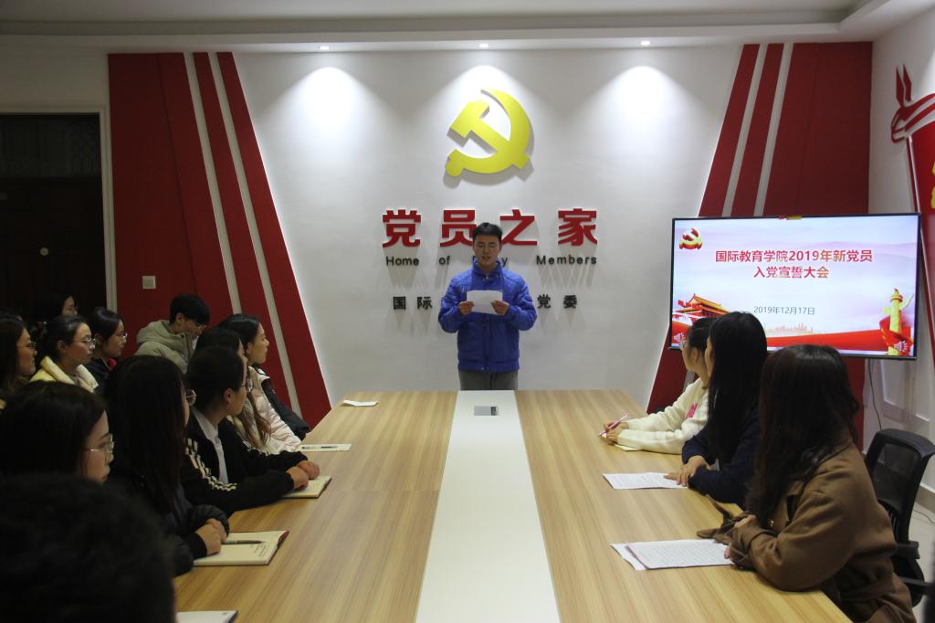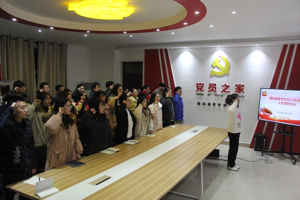 12月17日下午,韦德bevictor在逸夫楼202党员之家召开了2019年下半年新党员入党宣誓大会。员工第一党支部、员工第二党支部、中外文化交流协会党支部支部书记以及新发展入党的45名党员参加。会议由余艳楷主持。