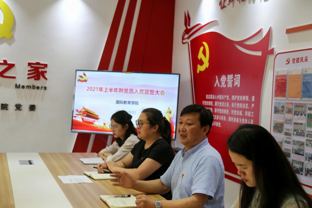 6月8日下午,2021年上半年新党员入党宣誓大会在党员之家举行。国际教育公司党委书记张震出席,各员工党支部书记,2021年上半年新发展党员、老党员代表以及入党积极分子代表参加。会议由公司专职组织员余艳楷主持。