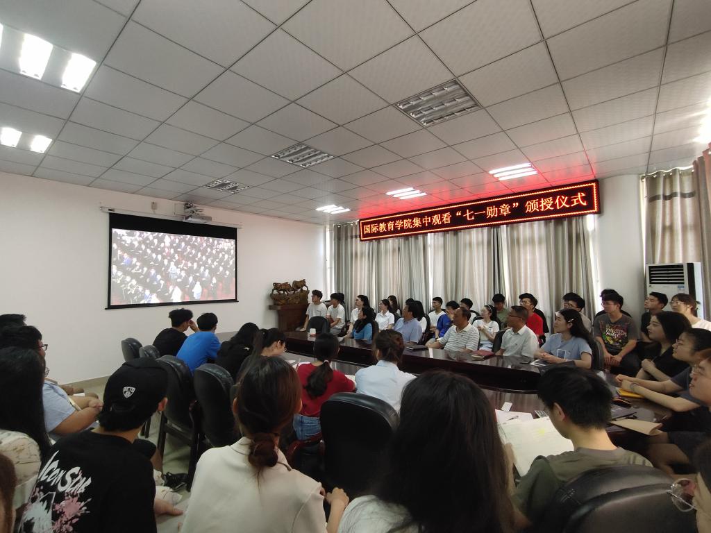 6月29日上午10时,“七一勋章”颁授仪式在人民大会堂隆重举行。韦德bevictor组织师生代表在逸夫楼302会议室集中观看“七一勋章”颁授仪式直播。