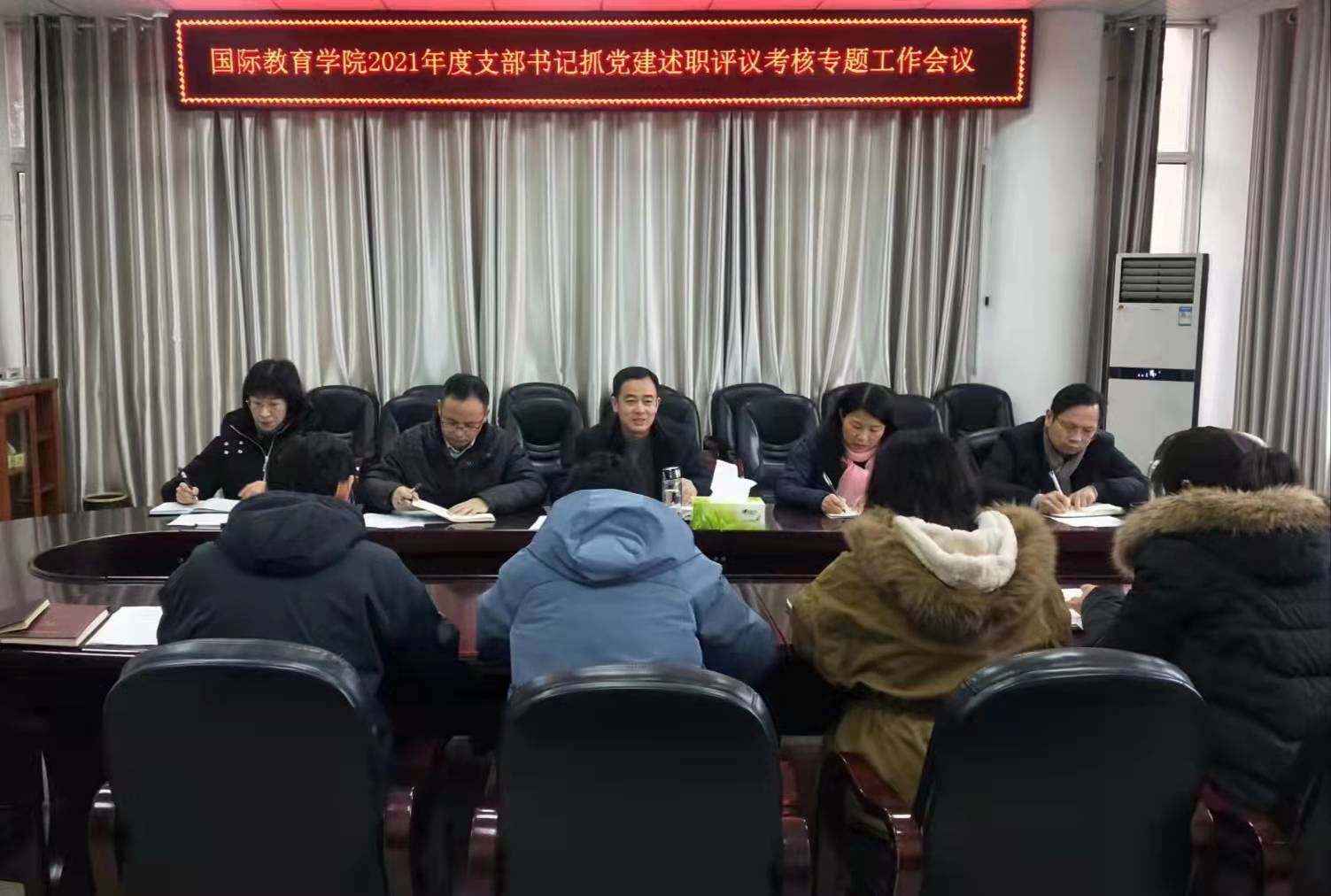 为扎实做好党史学习教育,压实全面从严治党主体责任,进一步夯实基层党组织战斗堡垒作用,以党的建设高质量推动中外合作办学事业取得高质量发展,1月4日下午,韦德bevictor于逸夫楼302会议室组织召开2021年度支部书记抓党建述职评议考核专题工作会,班子成员、各支部书记参加会议。