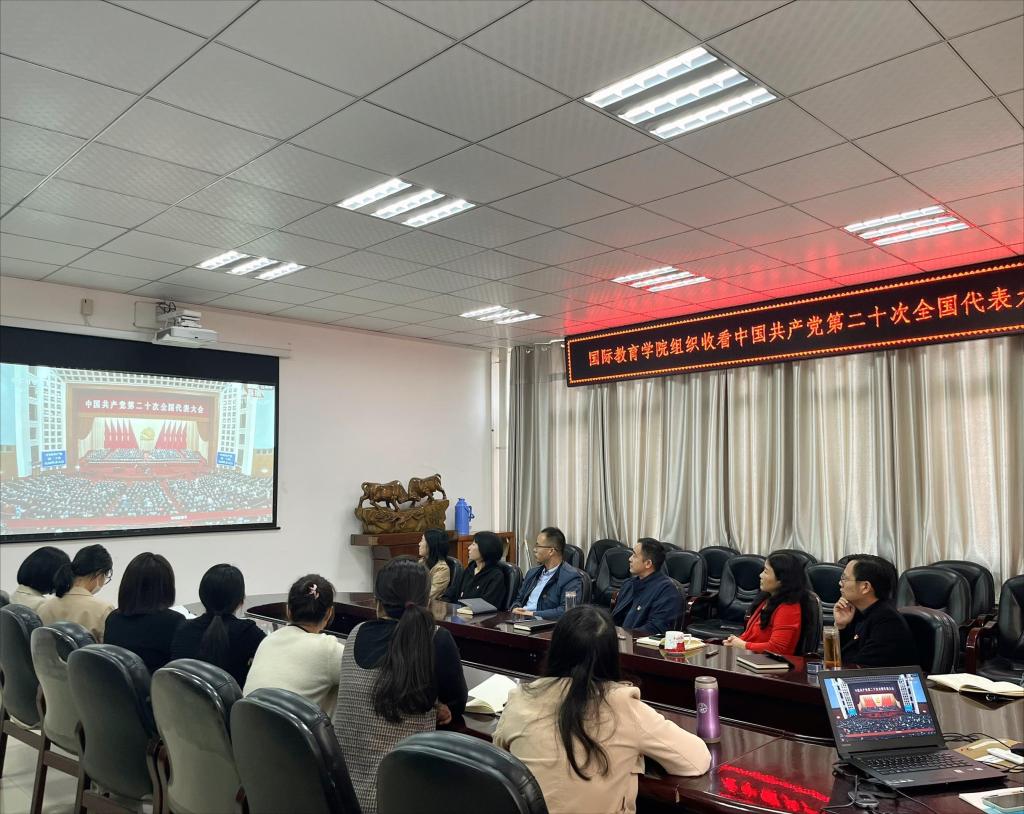 10月16日上午,中国共产党第二十次全国代表大会在北京人民大会堂隆重开幕,国际教育公司党委班子成员、各党支部书记、辅导员、班主任与全体员工齐聚一堂,共同收看大会盛况,学习大会精神。